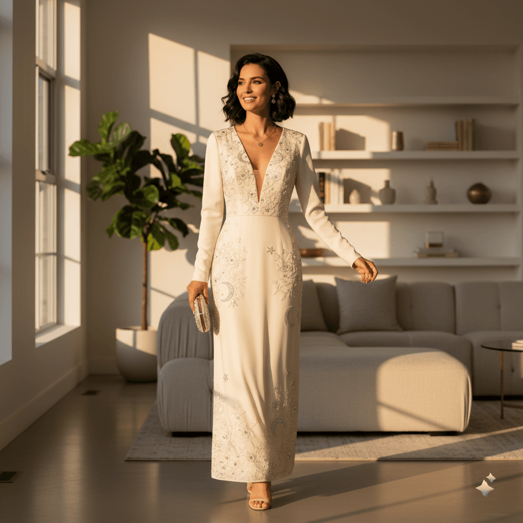 Experience unparalleled elegance with our Celestial Silk Gown. Meticulously hand-draped from 100% pure Mulberry silk, this ethereal piece embodies artisanal mastery. Its flowing silhouette is adorned with intricate, hand-embroidered celestial motifs featuring subtle crystal embellishments, catching light with every movement. Designed for grand events, this gown offers a luxurious drape and a breathtaking aesthetic. A true masterpiece of haute couture, promising a statement of sophisticated grace and timeless allure. Each stitch reflects dedication to impeccable craftsmanship.